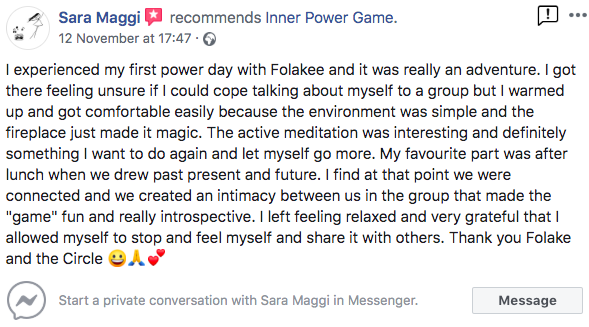 I had been experiencing fractured times and the focus on my authentic inner self during the day enabled me to let go of emotions and energy that were keeping me stuck and I felt joy and release.