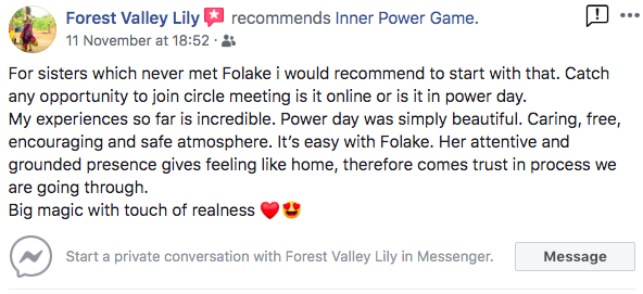 I would say that every woman with any problem would benefit because Folake gives a safe space where you can ground yourself and get in touch with your passions and from there work on your future."